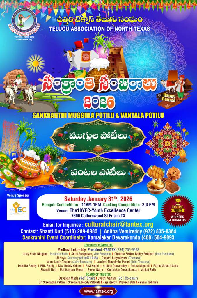 దాదాపు 4 దశాబ్దాల ఘన చరిత్ర కలిగిన ఉత్తర టెక్సస్ తెలుగు సంఘం (TANTEX) సంస్థకు 2025 వ సంవత్సరానికి అధ్యక్షునిగా పదవీ బాధ్యతలు స్వీకరించి నందుకు చాల సంతోషంగా వుంది. ఈ మహత్తర అవకాశం తెలుగు భాషా ,సంస్కృతులకు, స్థానిక తెలుగు సమాజానికి సేవ చేసే గొప్ప సదవకాశంగా భావిస్తున్నాను..